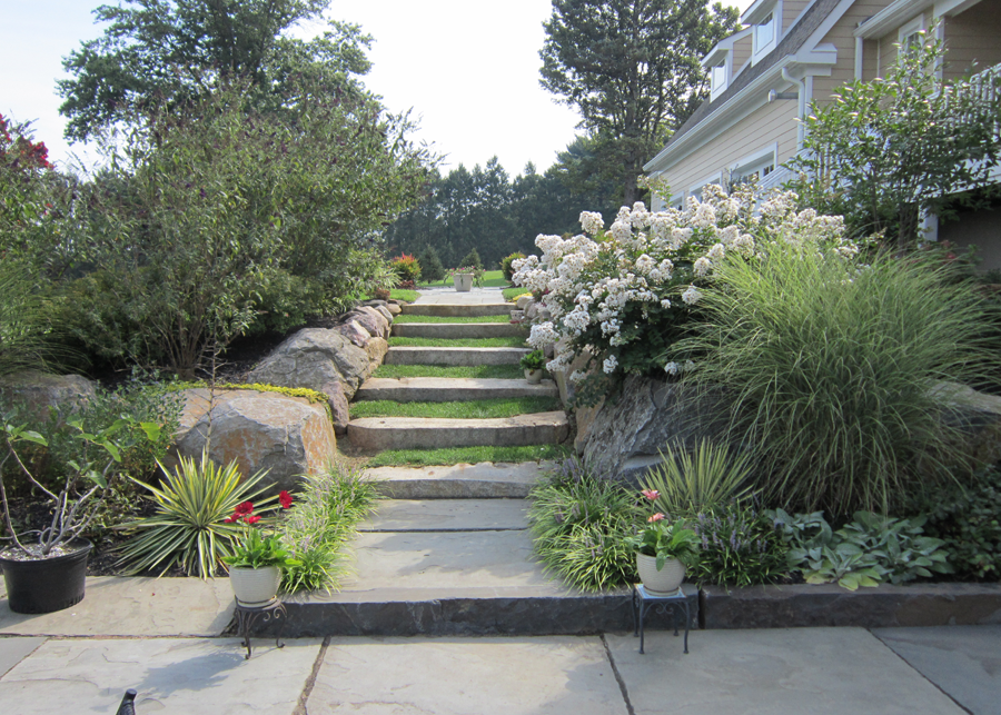 bluestone treads, heavy tread bluestone, irregular heel-toed steppers, natural snapped fieldstone heavy treads