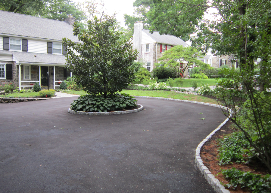 Belgian block, boulders, low dry-stack stone, snapped bluestone curbing / edging