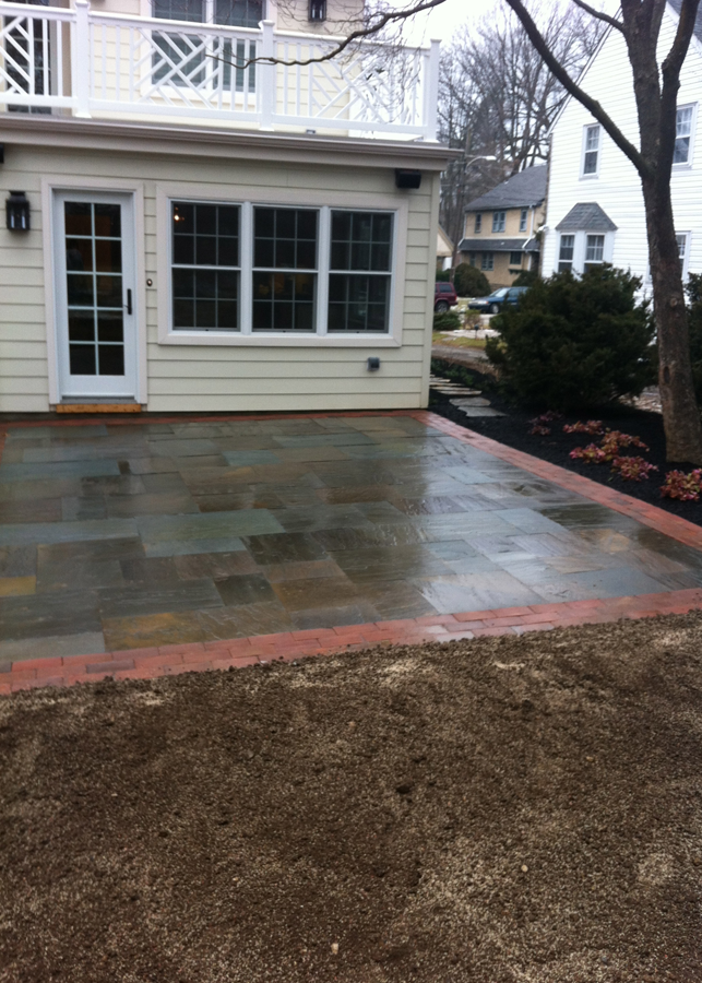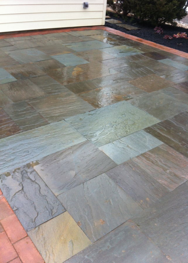 irregular bluestone, pattern-cut flagstone, brick, pavers, pea gravel, various types natural stone