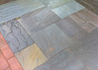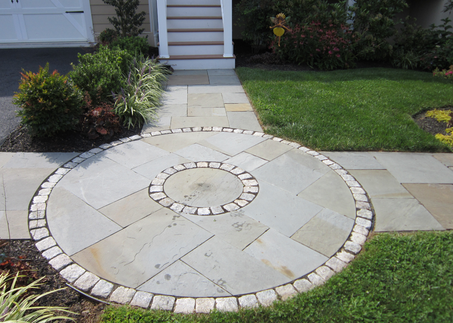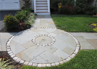 irregular bluestone, pattern-cut flagstone, brick, pavers, pea gravel, various types natural stone